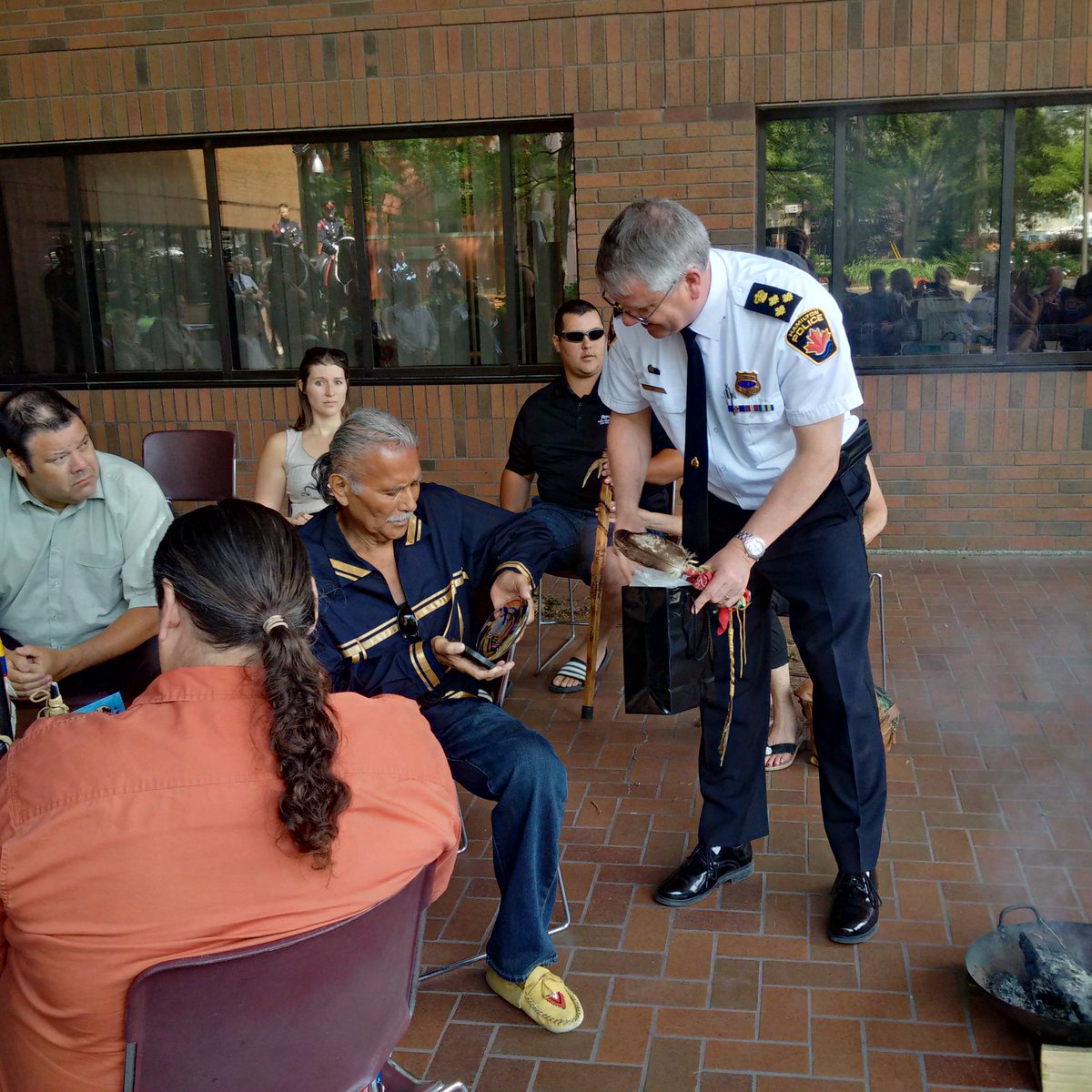 RT @HamiltonPolice: Monty receiving the Pride Award from Hamilton Police Service for his work & dedication to Indigenous communities ^ak https://t.co/LLCx9hlVg